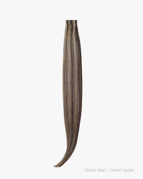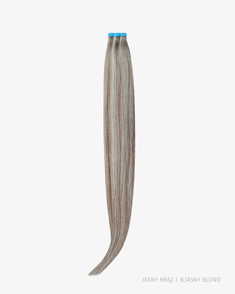Naturalne włosy służące do przedłużania tzw. metodą kanapkową. Waga taśm to 50g. Opakowanie zawiera 20 szt. taśm (na 10 "kanapek"). Zazwyczaj stosuje sie 100-150g czyli 2-3 paczki. Oferujemy je w najlepszej cenie w Polsce. Inne sklepy sprzedają włosy tape in o gramaturze 50g w cenie 280-300 zł. Dostępne także w wersji INVISIBLE.